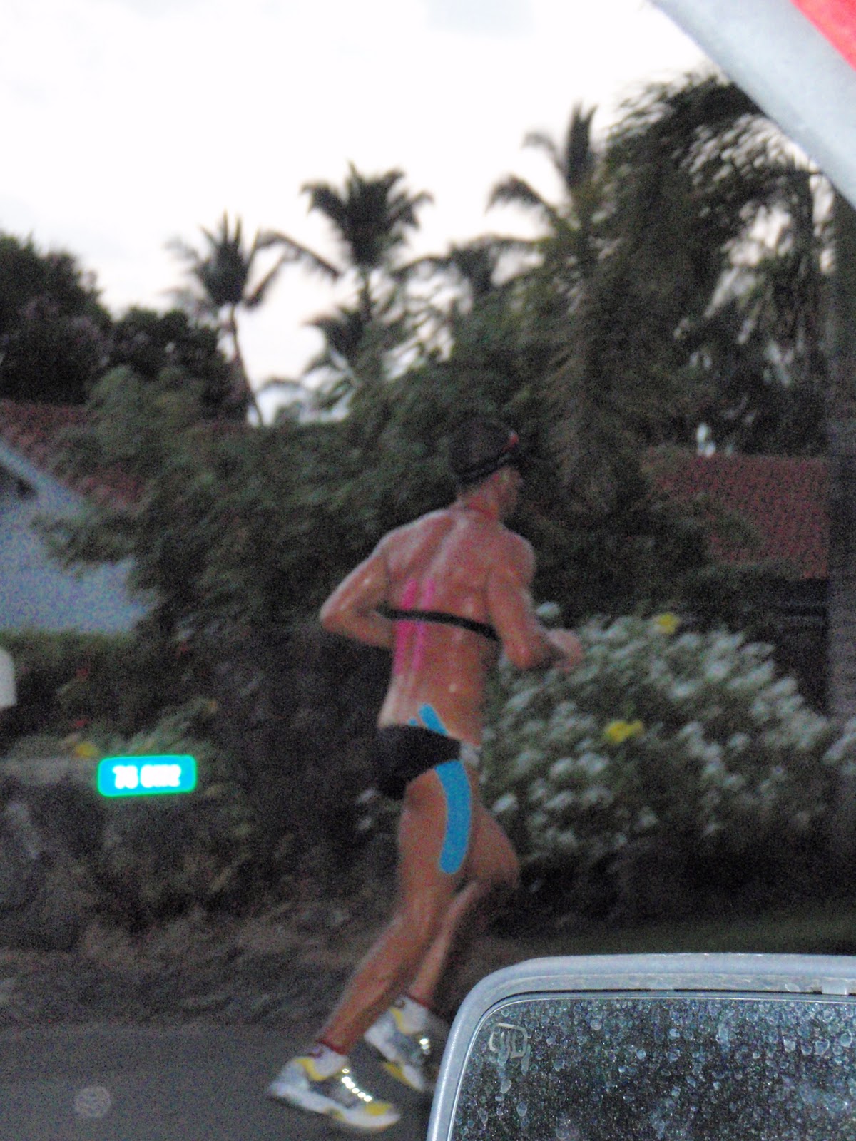 Friday night I learned that his family decided to follow his wishes and take him off life support. I wanted to grieve but didn't feel I could. I tried hard to sleep, but I couldn't do that either. Until this moment, I simply thought of crossing the finish line for him. But he decided to join me a bit early, and with three miles to go he let me know he was right there with me. Ask Robert and he'll tell you I was holding back the tears. I had NOTHING left in the tank. NOTHING! But, just as I turned to run down Palani I saw my next target. I flew! I was on her tail and waiting to make the pass. I figured I'd wait until we hit the hot corner, that is until she turned back and saw me on her feet. That was all it took and I was off. I turned back one and she was still within 100 feet, I turned onto Ali'i and surged again.